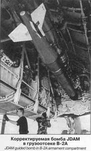 В американской печати приводились кадры, сделанные с борта разведывательного ЛА, на которых изображено восемь капониров одного из аэродромов в Косово. Каждый из них после удара В-2А, сбросившего восемь КАБ, имел по «черному пятну» (пробоине). На другом снимке было показано бетонное укрытие на аэродроме в Приш-тине, разрушенное со стороны передних и задних ворот двумя попаданиями (тоже работа В-2А). Однако большинство боевых самолетов ВВС Югославии благополучно покинули Косово после достижения перемирия, а значит успехи «Спиритов», хотя имели место, но оказались несколько преувеличенными. Скорее всего, причины этого кроются не в недостатках собственно самолета и его комплекса вооружения, а в несоответствии возможностей ударных и разведывательных средств. Это имело место и во время «Бури в пустыне», когда американская разведывательная авиация фактически оказалась не в состоянии обнаружить многие важнейшие цели, в частности, мобильные пусковые установки баллистических ракет. К одному из весьма сомнительных «успехов» В-2А, в значительной степени обусловленному «четкой» работой разведки, следует отнести бомбовый удар по зданию китайского посольства в Белграде, нанесенный тремя КАБ JDAM. Безусловно, совершенствование информационного обеспечения боевого применения стратегических ударных самолетов станет одним из важнейших направлений развития авиации в начале XXI века.