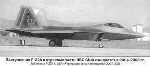 Летно-демонстрационный прототип «Рэптора» – YF-22A – совершил первый полет в 1990 г. К 2000 г. в летных испытаниях участвовали три экземпляра самолета. Серийное производство F-22A должно начаться в 2002 г, а поступление в строевые части ВВС ожидается в 2004-2005 гг. В настоящее время ВВС США планируют закупить, в общей сложности, 339 самолетов F-22A, поставки которых завершатся в начале второго десятилетия XXI века. Однако уже высказываются предложения еще больше ограничить число заказываемых ВВС машин. Огромная стоимость истребителя, перевалившая за 100 млн. USD, очевидно, существенно ограничит его экспортный потенциал. Покупателями «Рэптора» могут стать лишь такие страны, как Саудовская Аравия или Израиль, при этом общее число проданных машин вряд ли превысит несколько десятков.