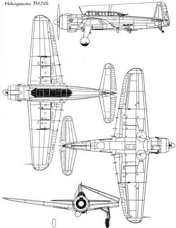 Тем временем морской штаб настоял на прекращении производства двигателя "Мамору", что серьезно отразилось на серийном производстве. Кеничи Мацумура был вынужден установить на самолет 1850-сильный двигатель Мицубиси МК4Т "Касей"-25. Смена двигателя потребовала только незначительных изменений в конструкции, так что уже в октябре 1943 г Накадзима смогла поставить 16 самолетов с двигателем "Мамору" и 18 самолетов с двигателем "Касей" под обозначением "модель 12" - B5N2. С этого момента выпускалась только последняя модель самолета. Пик производства - 89 B6N2 - был достигнут в декабре 1944 г. В войсках B6N2 показал себя вполне удовлетворительно, и никаких доработок не потребовалось. За время серийного производства было внесено только одно изменение - на модификацию B6N2a "модель 12А" вместо верхнего 7,7-мм пулемета был установлен 13-мм пулемет "тип 2". Кроме того, самолет получил неубираемое хвостовое колесо. Эта модификация самолета широко применялась в последние два года войны на Тихом океане. В частности, во время сражения за Окинаву "Тензаны" оказались для американцев довольно агрессивным противникам как в качестве обычного бомбардировщика, так и в качестве самолета-камикадзе.