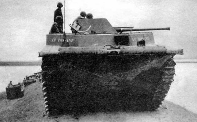 Эта пушка со скорострельностью от 20 до 120 выстр./мин и начальной скоростью снаряда 800 — 880 м/с успешно применялась по наземным целям — благо в боекомплект входили патроны с осколочно- фугасным и бронебойным снарядами. Такие самоходные 40-мм пушки часто использовались совместно с 75-мм орудиями танков LVT(A)-4. Французы также включали свои LVT в состав десантов, высаживаемых вдоль вьетнамского побережья для изоляции и уничтожения частей армии ДРВ. Эксплуатация и поддержание боеспособности LVT, не рассчитанных на длительное использование в качестве наземных боевых машин, порождали много проблем. Кроме того, вьетнамцы, получившие противотанковые средства и крупнокалиберные пулеметы, все успешнее боролись со слабо защищенными машинами. Однако в целом французы высоко оценили возможности амфибий.