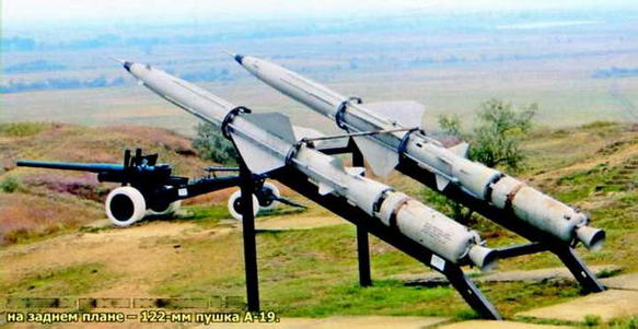 Зенитные ракеты комплекса С-75, на заднем плане - 122-мм рушка А-19