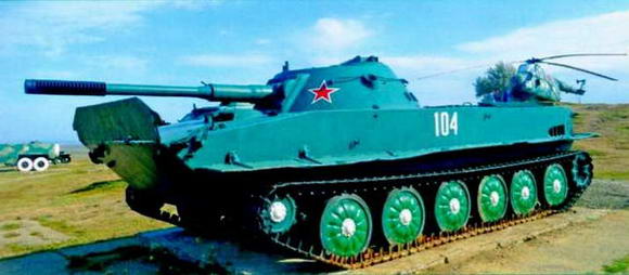 Плавающий танк ПТ-76 первых выпусков (с активно-реактивным дульным тормозом).