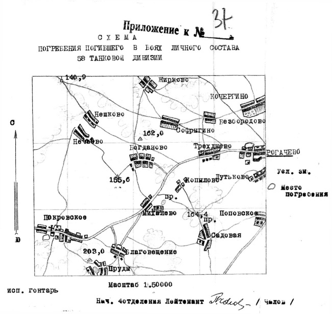 Места погребения воинов 58-й танковой дивизии в районе Доршево, Петровка (по данным ее штаба).