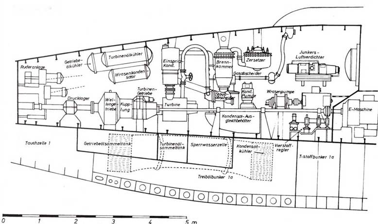 Так что как запоздалая острота выглядело замечание Дёница, что нежизнеспособная подлодка U 794 продемонстрировала мощность и преимущества турбин Вальтера. Он посетил Хелу 23 марта 1944 г., чтобы осмотреть 6 подлодок, отличавшихся различными новинками: лучшее время погружения продемонстрировала подлодка U 866; подводная выхлопная груба была установлена на U 241; 3,7-см пушка, которой управлял один человек; новый тип зенитного вооружения на U 37; новые типы шнорхелей. Совсем в стороне находилась пришвартованная экспериментальная подлодка Вальтера U 794. U 792 только что вернулась из опытного рейса и должна была прежде всего заправиться топливом. После подробного доклада Хеллера Дёниц выразил желание отправиться в опытный рейс. На вопрос : «Когда вы будете выходить?» Хеллер, который конечно же хотел использовать проверенную U 792, ответил: «На следующий день». Дёниц согласился. Через несколько часов его вызвали для важной беседы. Однако он не хотел отказываться от участия в испытательном рейсе экспериментальной подлодки Вальтера. Необходимая заправка перекисью водорода подлодки U 792 требовала много времени, которого не было у главнокомандующего. Поэтому Хеллер вынужден был предоставить Дё- ницу подлодку U 794, которая была уже заправлена.
