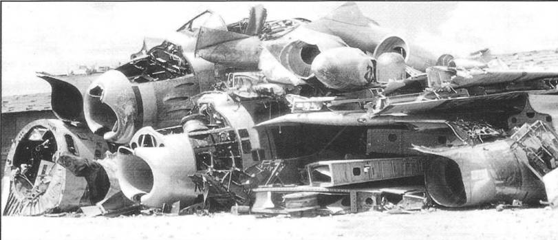 Свалка F-86, списанных после боевых повреждений, на одном из аэродромов Кореи