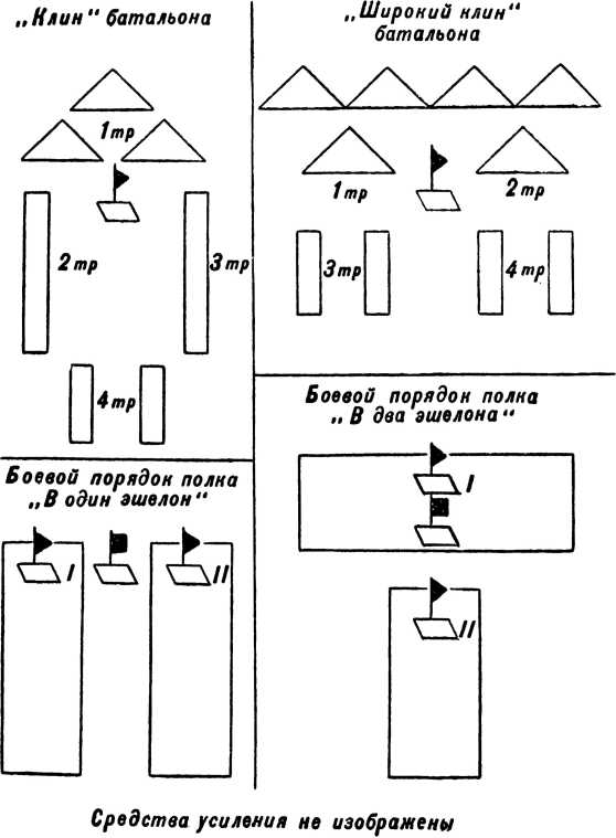 Рис. 2. Предбоевые и боевые порядки танкового батальона и полка.