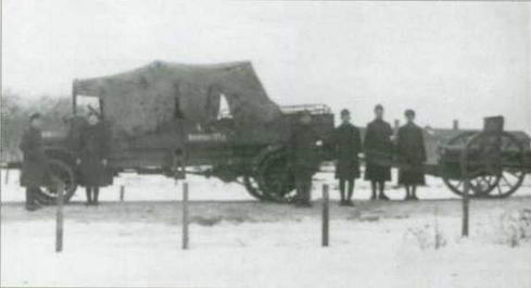 Автомобиль-зарядный ящик "Уайт" производства Путиловского завода с прицепленной 76-мм полевой пушкой обр. 1902 г. из состава Дивизиона бронепоездов Запасного батальона армии Эстонии. Январь, 1919 г.