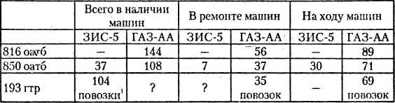 Состояние армейского транспорта на 10 февраля