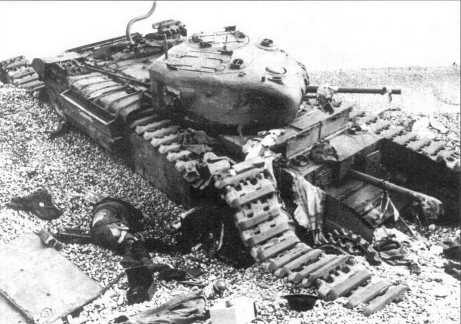 Пехотный танк модификации «Черчилль I», подбитый на пляже г.Дьеппа. Август 1942 года