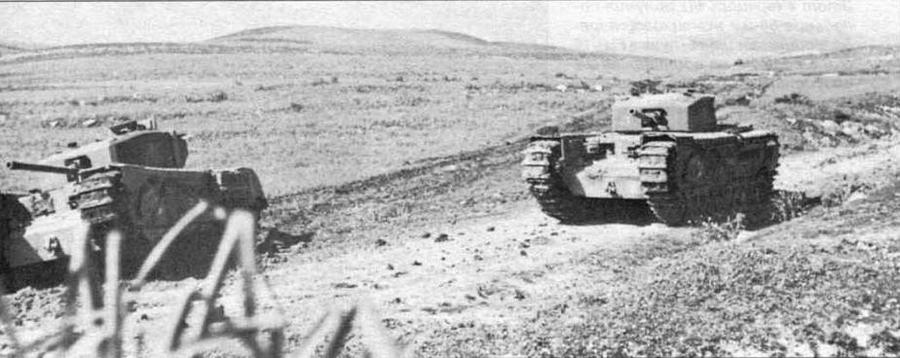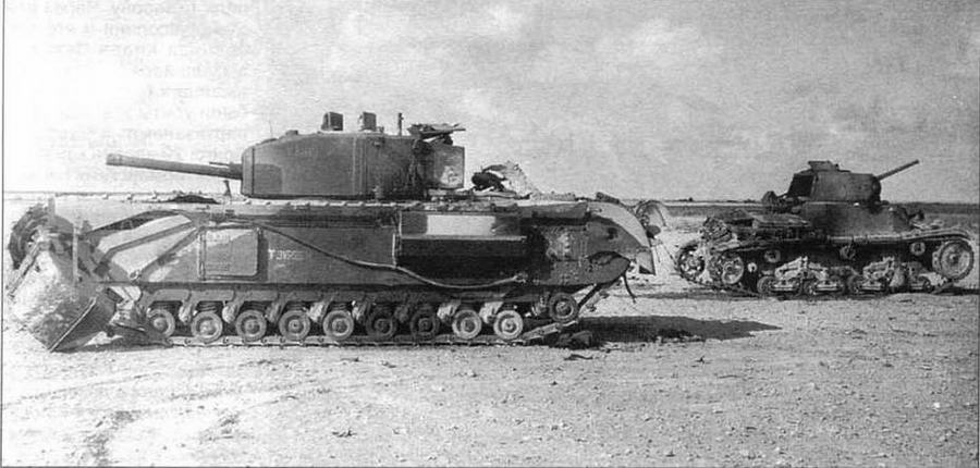 Подбитые противники. В отличие от итальянского танка М13/40 (на фото — сзади), поразить «Черчилль» было не просто. Северная Африка, ноябрь 1942 года