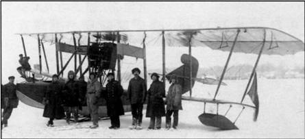 «На вооружении морской авиации состоят разведчики лодочного типа (Савойя-1 ббис и поплавковые Ю-20, учебно-тренировочные МР-1 и истребители «Фоккер ДУ11» (DVII) и «Балилла».