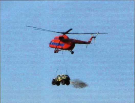 На этом снимке, сделанном в Сибири, запечатлен вертолет Ми-8, несущий на внешней подвеске снегоболотоход. Для стабилизации автомобиля в полете использована… обычная береза, выполняющая роль хвостового оперения.