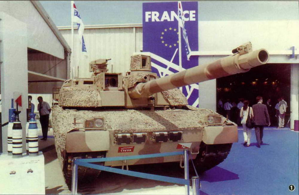 1. Основной боевой танк Leclerc Tropik армии Объединенных Арабских Эмиратов перед французским павильоном выставки IDEX 2001