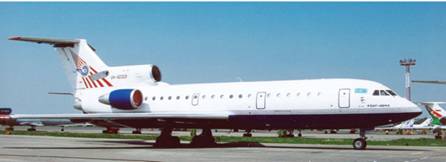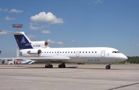 Внизу: один из двух Як-42 компании «СКАТ» – второго по величине казахстанского авиаперевозчика