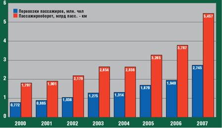 Естественно, что с самого начала своей деятельности «Эйр Астана» демонстрирует устойчивый рост и по пассажиропотоку – как на внутренних, так и на международных маршрутах. Если в 2002 г. ее услугами воспользовалось немногим более 164 тыс. пассажиров, то уже в 2005-м этот показатель впервые перешагнул миллионную отметку. В 2007 г. «Эйр Астана» перевезла более 2,1 млн пассажиров, что составило почти 78% от всего объема пассажирских авиаперевозок в гражданской авиации Казахстана! Общее же число пассажиров компании за шесть лет ее деятельности превысило 6,85 млн.