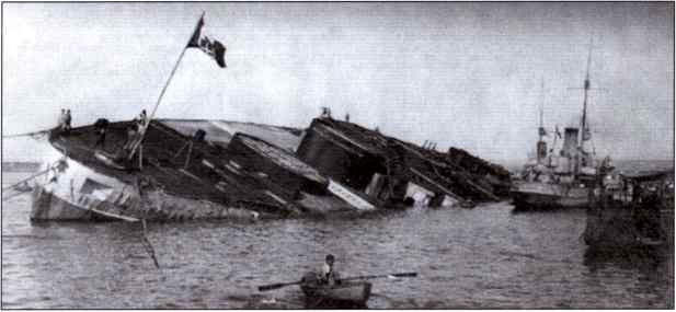 Перевернутая «Императрица Мария». Рядом крейсер «Кагул».