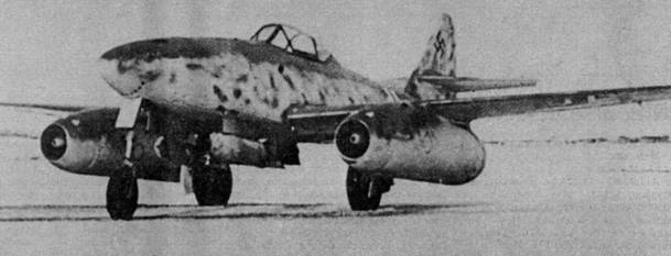 Истребитель-бомбардировщик Me 262A-1a с двумя 500-кг бомбами на подфюзеляжных держателях