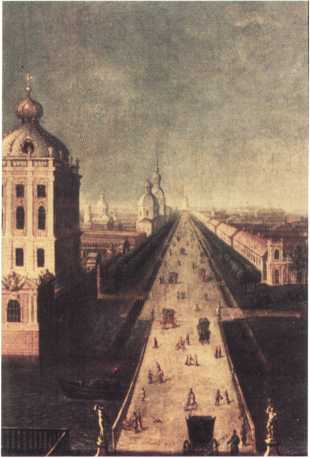 Перспектива Невского проспекта от Аничкова моста. Картина неизвестного художника. 1760-е гг. (ПГ).