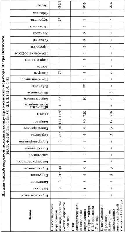 При этом на кораблях Балтийского флота они служили вместе с солдатами сухопутных частей. Например, летом 1714 г. на борту трех корабельных эскадр находилось 1157 чинов морских батальонов и в то же время 1323 человека Лейб- Гвардии Преображенского, Семеновского и 2-го Гренадерского полков. На флагмане Петра I «Святая Екатерина» служили 128 гвардейцев и 266 чинов батальона Контр-адмирала. На галерной же эскадре армейские команды и вовсе имели доминирующее значение, поскольку солдат небольшого Галерного батальона едва хватало для скампавей высших начальников. При совместной службе неизбежно возникали «некоторые противности между морских и сухопутных офицеров». В связи с этим 29 мая 1714 г. Петр I издал специальный указ, в котором впервые четко определил их взаимоотношения на борту: