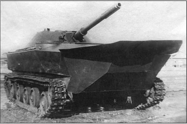 Однако не все было так гладко. И среди танкостроителей, и среди военных нашлось немало скептиков, с недоверием относившихся к установке на плавающий танк водометных движителей. С подачи командующего бронетанковыми и механизированными войсками маршала бронетанковых войск С.И. Богданова министр Вооруженных Сил Н.А. Булганин в августе 1949 года, почти одновременно с «объектом 740», санкционировал разработку, изготовление и испытание дублирующих машин с винтовыми движителями силами и средствами заказчика.