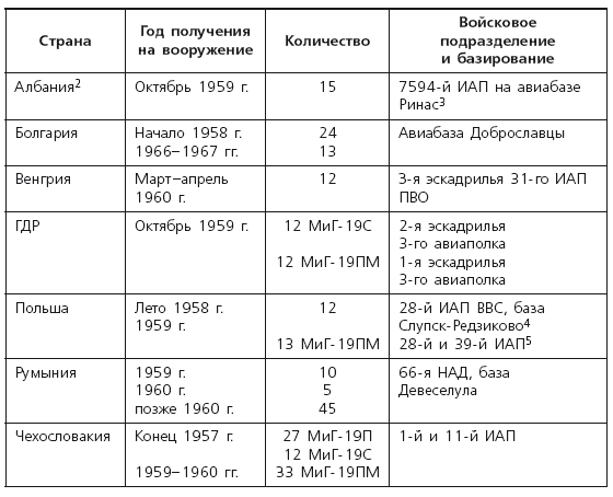 Советские поставки МиГ-1911, МиГ-19ПМ, МиГ-19С странам-участницам ОВД[274]