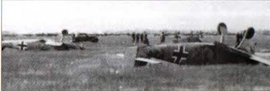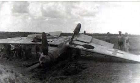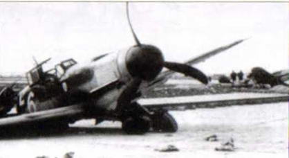 Этого момента стойка шасси не могла выдержать и на пробеге в случае резкого разворота самолета. Парировать разворот летчик не мог, потому как вертикальное оперение затенялось фюзеляжем и руль направления был малоэффективен (высокий киль ввели только на опытном истребителе Me 209). О слабости поворотного узла шасси в отношении боковой нагрузки свидетельствует даже такой факт, что при буксировке самолета стойки шасси стягивали тросиком (см. фото на стр. 44). Кстати, обратите внимание на то, что на представленных снимках аварийных "мессеров" (подобные фотографии вы и сами сможете найти в книгах, журналах и в сети Интернет) хорошо заметно, что подломанная стойка не просто сломана, а вывернута во внутрь. Это достаточно странный дефект, практически не встречающийся на "Спитфайре".