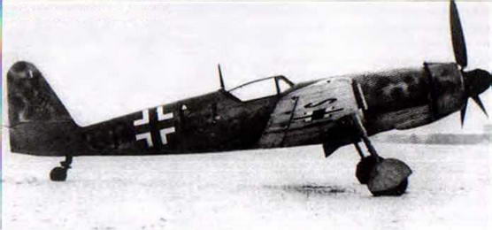 В принципе, при такой конструкции самолета, можно было осуществить переход на более крупное крыло, но с ламинарным профилем (как на "Мустанге", "Темпесте" или "Кингкобре"). Но немцы не могли убрать в столь тонкое крыло стойки шасси. К тому же, в годы войны очень быстро спроектировать, испытать и запустить в массовое производство совершенно новое крыло немцы были не в состоянии. Никто из германских конструкторов не мог даже предположить, как поведет себя самолет с новым крылом, имеющим совершенно иные аэродинамические характеристики. А ведь вопросы устойчивости и управляемости в самолетостроении всегда являлись самой сложной и самой трудновыполнимой задачей. На одни только испытания и доводку самолета с измененной аэродинамикой потребовалась бы уйма времени [3 Тут стоит напомнить о том, как в конце воины с аналогичной проблемой столкнулись и конструкторы фирмы "Супермарин". Когда "Спитфайр" приблизился по массе к 4 т, пришлось спроектировать для него новое крыло. Думали, что самолет после этого начнет летать еще лучше. На деле же все оказалось иначе. Самолет перестал слушаться пилота. Чтобы научить его как следует летать, англичанам потребовался целый год! Не решились по ходу войны изменить профиль крыла и конструкторы советского фронтового бомбардировщика Пе-2, хотя это было требованием времени.].