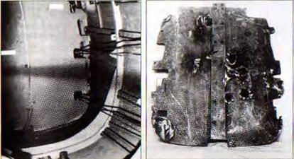 Слева - установленная в фюзеляже; справа - после испытаний на обстрел (вид со стороны бензобака).