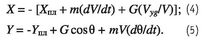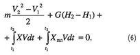 В приведенных формулах индексом 1 отмечены скорость V и время t в начале рассматриваемого участка траектории, а индексом 2 — в конце участка. Сила сопротивления несущего винта X (X > 0, когда сила направлена назад) и сила сопротивления планера вертолета X, скорость и время, не отмеченные индексом, — это текущие значения этих величин при движении на рассматриваемом участке траектории. Для простоты сила тяжести G отнесена к внешним силам.
