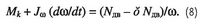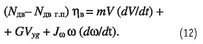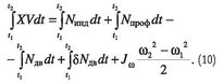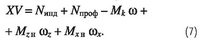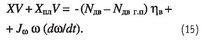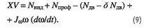 Здесь — Jω момент инерции винта и вращаемых им агрегатов. Формула (8) является условием равновесия моментов относительно оси вала несущего винта; слева — моменты аэродинамических и инерционных сил лопастей (положительные значения моментов направлены против вращения несущего винта), а справа — момент, создаваемый двигателями вертолета (положительные значения моментов направлены по вращению несущего винта); δNдв- мощность двигателей, расходуемая на приводы электро-, гидравлических и других систем вертолета, на вращение рулевого винта и теряемая из-за потерь на входе в двигатель и на выхлопе. Подставив формулу (8) в выражение (7), получим