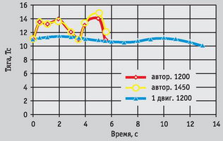 Рис. 2. Изменение параметров вертолета при посадках на авторотации и с одним работающим двигателем; момент инерции НВ 1200–1450 кгм/с²