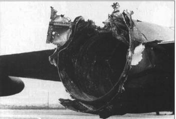 Последствия попадания ракеты ПЗРК «Стрела» в двигатель «Канберры»