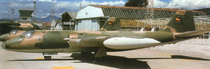 Первый контракт на поставку восьми B(l).8 перуанским ВВС был заключен между маем 1956 г. и мартом следующего года. Самолеты поступили в 22-ю эскадрилью 21-й бомбардировочной группы. К началу 1960-х гг. перуанцы потеряли две машины и для частичного восполнения потерь заказали еще один B(l).8. В целом они закупали «Канберры» на протяжении почти 35 лет и в общей сложности обзавелись 41 самолетом различных модификаций, в том числе: В.72 и Т.74, представлявшими собой модернизированные В.2 и Т.4; В(1).56 – этакий «микс» из В.2 и В.6; В(1).68 – вариант B(l).8. По данным World Air Forces Directory, за годы эксплуатации 14 машин были потеряны, причем только две в ходе боевых действий.