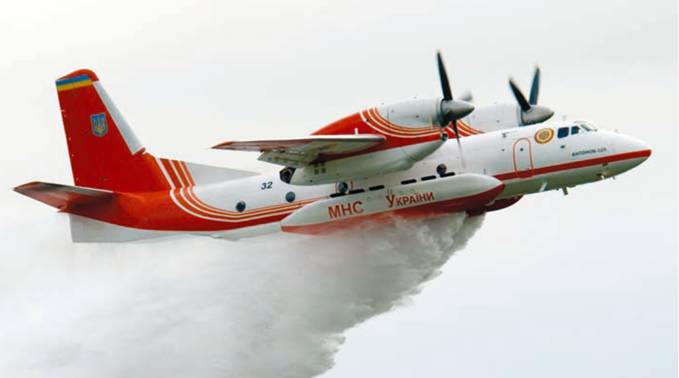 В 2008 г. завод «Авиант» выполнил крупный внутренний контракт, поставив четыре новых противопожарных самолета Ан-32П авиации МЧС Украины. На снимке — демонстрация пожаротушения с борта второго Ан-32П (№ 36–09), переданного ведомству в марте 2008 г.