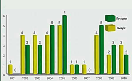 После относительно успешного 2008 г., когда украинский авиапром смог поставить заказчикам пять новых самолетов (напомним, в 2007 г. удалось построить только одну машину, а в 2006-м — вообще ни одной), кривая выпуска продукции снова поползла вниз. В прошлом году на Украине было изготовлено всего два новых лайнера (поставлено — три).