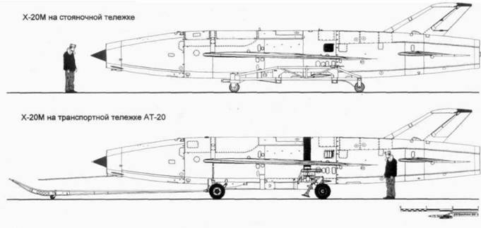 Для заброски тяжелого боеприпаса служила первая в мире межконтинентальная баллистическая ракета Р-7 - гигант массой в 275 т. Не менее колоссальными выглядели и опытные крылатые ракеты - лавочкинская «Буря» в 130 т и мясищевский 200-тонный «Буран». Под стать им в своем классе была и Х-20, чья проектная масса уже в первом приближении переваливала за десять тонн, в несколько раз превосходя современные ей изделия.
