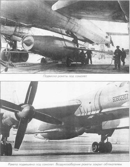 Сама подвеска Х-20 под самолет требовала недюжинных усилий и сноровки. Тележка с трехметровой высоты изделием впритык протискивалась под фюзеляж, заставляя проворачивать мешавшие лопасти винтов и ювелирно "угадывая" килем ракеты в просвет гру-зоотсека. Тележка "приседала", позволяя выиграть лишние сантиметры, но в таком положении через полчаса безвозвратно садилась на землю. Не раз при закатке сносили антенны на верхушке киля, защищать которые стали с помощью специальной рамы (с нею при "касании" антенны оставались целы, но, бывало, сминался сам киль).