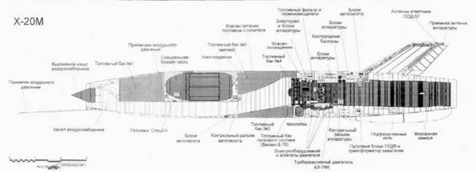 Увеличение грузоотсека повлекло перекомпоновку топливной системы, емкость которой несколько уменьшилась; для запуска двигателя ракеты, его прогрева и вывода на режим в фюзеляже установили дополнительный бак на 500 кг керосина, соединявшийся с топливной системой Х-20 магистралью с отсечными клапанами, перекрывавшимися перед пуском. Для энергообеспечения аппаратуры ввели дополнительные более мощные преобразователи в электросистеме переменного тока.