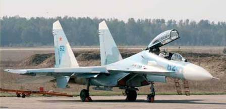 Вверху и внизу: два образца модернизированного многофункционального истребителя Су-27УБМ1, базирующиеся на аэродроме Барановичи. По их образцу планируется доработать и остальные двухместные Су-27УБ из состава 61 ИАБ ВВС РБ