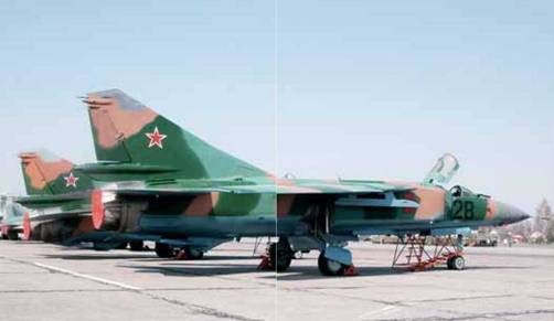 Слева: наследие недавнего советского прошлого 61 ИАБ (в то время -61-го истребительного авиаполка 2 OA Войск ПВО Советского Союза) – истребители МиГ-23МЛД и МиГ-23УБ. Такие машины состояли на вооружении двух эскадрилий полка в Барановичах до начала 90-х гг., когда были заменены более современными Су-27П и Су-27УБ. Сейчас самолеты МиГ-23 находятся на хранении в ТЭЧ 61 ИАБ