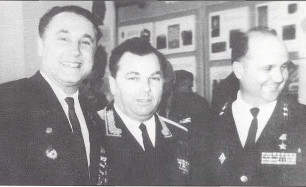 В комнате Боевой славы полка, В. И. Алексондрюк, И.Н. Кожедуб и А.Ф. Васько 23 марта 1968 г.