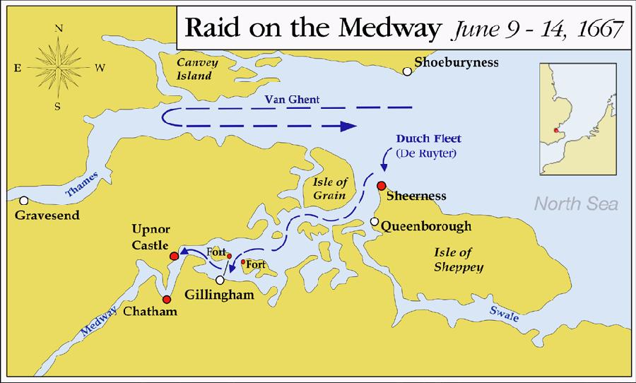 Тем временем Рюйтер готовился нанести удар совсем в другом направлении. Вскоре после полудня 20 июня 1667 года голландская эскадра вошла в устье реки Мидуэй.