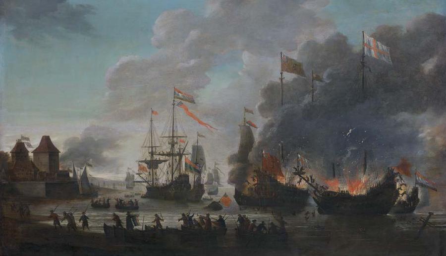 «Горящий английские корабли» Худ. Ян Ван Лейден.