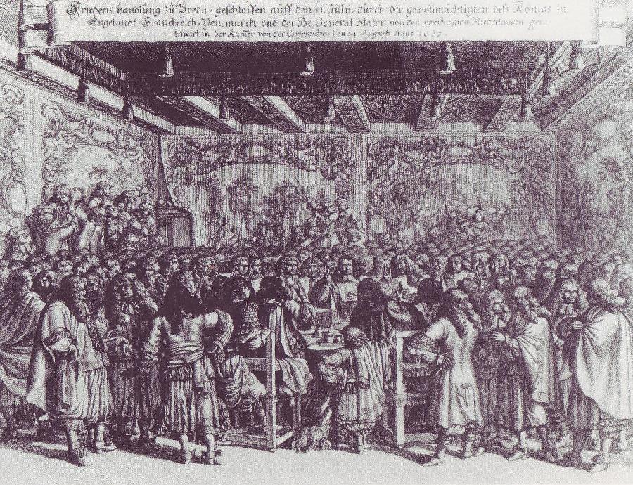 21 июля 1667 года после долгих переговоров в Бреде был заключен мир. Несмотря на успехи последних лет, Голландии пришлось заключить мир на невыгодных для нее условиях: она потеряла некоторые колонии, должна была снова обязаться первой производить салют английскому флагу, приспускать свой флаг перед английским и спускать марсели. Однако крупным судовладельцам и коммерсантам удалось добиться ограничения этих оскорбительных для самолюбия нации правил. Франция, боясь оставаться один на один с Англией, немедленно так же заключила мир.