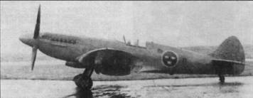 Надо сказать, что после окончания Второй мировой войны англичане распродавали кому угодно любые "Спитфайры" и "Сифайры". В Италию в 1947 г. передали 99 LF IX и 11 HF IX, в том же году Турция купила 198 LF IX. У итальянцев к маю 1945 г. оставалось всего 15 "Спитфайров", из них 13 в 20-й группе 51 -го полка. С лета 1947 г. их стали списывать, но в рамках НАТО для модернизации англичане переда- пи Италии "девятки", хранившиеся на складе авиабазы Тревизо, и запчасти к ним. Этими машинами оснастили два полка, 5-й и 51-й. К 26 августа 1947 г. 5-й полк в Виненце уже имел 42 "Спит- файра". Самолеты были сильно изношены, и в июне 1948 г. после нескольких катастроф летать на них запретили (рвались болты, крепившие консоли к фюзеляжу). После тотальной проверки эксплуатацию возобновили, но ненадолго – до осени 1950 г. Последний итальянский "Спитфайр" использовался школой в Лечче до 1952 г.