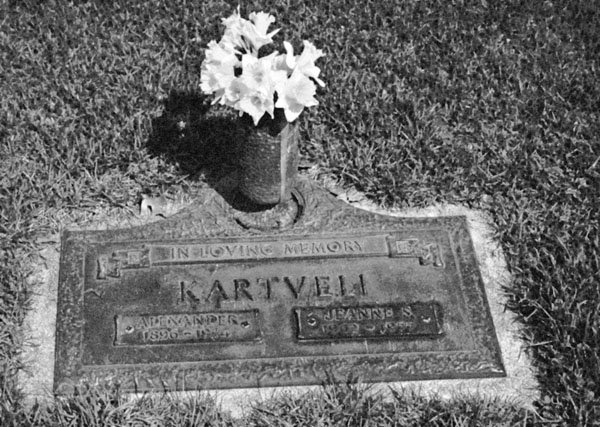 Прошло много лет, и сегодня на могиле Александра Картвели и его жены Джейн живые цветы. Через три с небольшим года она соединилась с ним на небесах, а их останки лежат рядом. На отлитой чугунной плите, которую заказывала она, посвящение: «В память о любви». Затем общая фамилия Картвели, и ниже на двух, уже после её кончины установленных, литых пластинах их имена и даты жизни.