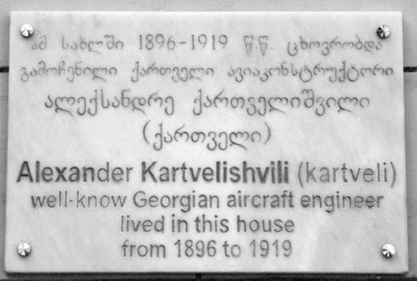 Тбилисский авиационный завод имени Димитрова, который во время Великой Отечественной войны выпускал боевые самолёты для фронта, а перед распадом СССР выпускал штурмовики Сухого Су-25, теперь в честь великого грузинского авиаконструктора переименован в Авиационный завод имени Александра Картвелишвили. Об этом свидетельствует вывеска на здании заводоуправления, исполненная на грузинском и английском языках.
