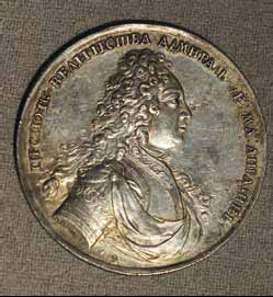Медаль в честь адмирала Ф. Д. Апраксина в память об отбитой ми атаки шведов у устья Невы в 1708 г.