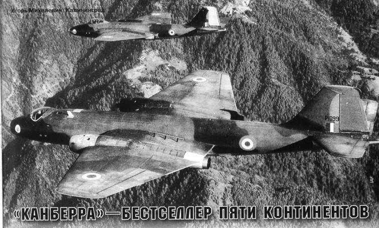 Canberra PR.57 из 106-й эскадрильи ВВС Индии. Авиабаза Сринагар, середина 1980-х гг. Этот разведчик принимал участие в вооруженных конфликтах в Конго, Гоа, Индо-пакистанских войнах 1965 и 1971 гг. В ходе операции в Каргиле в 1999 г. самолет получил попадание ракеты ПЗРК «Стингер» в двигатель, но благополучно вернулся на авиабазу. 19 декабря 2005 г. эта «Канберра» разбилась возле авиабазы Агра (см. фото на стр. 30)