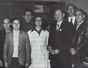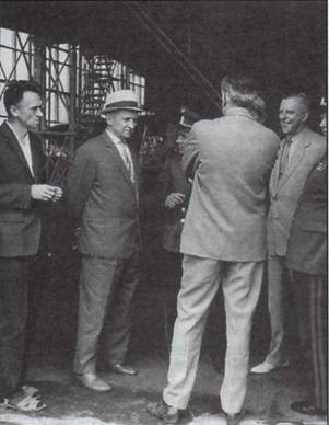 Генеральный конструктор П. О. Сухой с сотрудниками в цехе М3 "Кулон" в ожидании приезда Министра обороны СССР А.А. Гречко